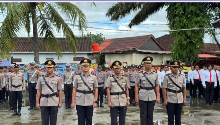 Kapolres Pesisir Barat AKBP Bestiana S.I.K. M.M. memimpin langsung upacara serah terima jabatan (sertijab) sejumlah Pejabat Utama (PJU) di halaman kantor Polres Pesisir Barat