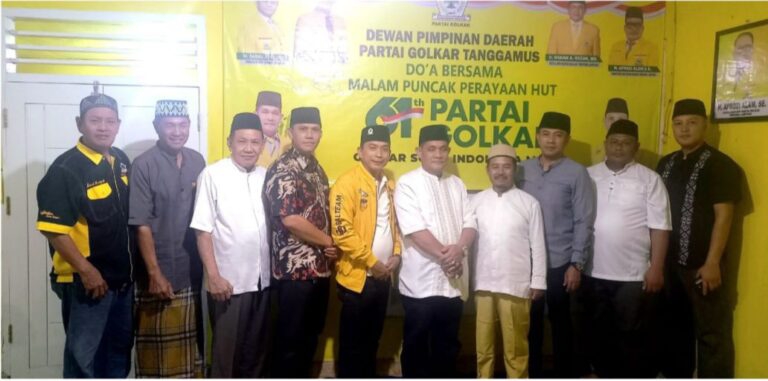 ″Tanggamus, Lampung, Tarakan Indonesia.Com .Dewan Pimpinan Daerah (DPD) Partai Golkar Kabupaten Tanggamus merayakan Hari Ulang Tahun (HUT) ke-61 partai melalui acara syukuran dan silaturahmi yang hangat. Acara ini menjadi wujud terima kokasih, refleksi perjalanan partai, serta penegasan komitmen berkontribusi pada politik nasional dan pembangunan daerah.