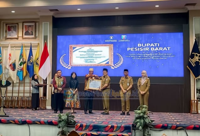 Penghargaan tersebut diterima oleh Sekretaris Daerah Kabupaten Pesisir Barat, Tedi Zadmiko, S.K.M., S.H., M.M. yang hadir mewakili pemerintah daerah dalam kegiatan yang juga dihadiri Menteri Hukum RI, Supratman Andi Agtas.